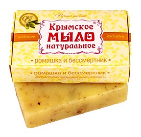 Действие: Мыло на основе отвара и масла ромашки лекарственной. Содержит масло зародышей пшеницы и цветки бессмертника, которые нежно массируют кожу, очищают поры. Бессмертник оказывает успокаивающее действие.