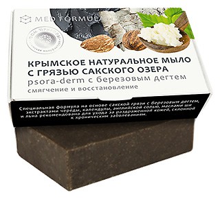 Действие: Крымское мыло "Psora-Derm с березовым дегтем" содержит лечебную грязь Сакского озера, дополненную сбалансированным комплексом природных компонентов, разработанным для ухода за раздраженной кожей. Английская соль (магнезия) снимает зуд, уменьшает высыпания, способствует лечению экземы, псориаза и других заболеваний кожи. Березовый деготь применяется при многих острых и хронических дерматозах, помогает обновлению и регенерации эпидермиса, заживляет раны, усиливает кровообращение в тканях кожи и омолаживает кожу. Экстракт календулы обладает антимикробным и противовоспалительным действием. Экстракт череды снижает аллергические реакции, успокаивает зуд, снимает воспаления. Экстракт сосны оказывает общее успокаивающее, смягчающее действие. Масло дерева ши обладает превосходным смягчающим действием и хорошо подходит для смазывания огрубевших участков тела. Масло льна содержит кислоту омега-3, из-за дефицита которой чаще всего возникают кожные заболевания. Композиция эфирных масел облегчает болезненное состояние кожи, успокаивает нервную систему и способствует скорейшему выздоровлению.